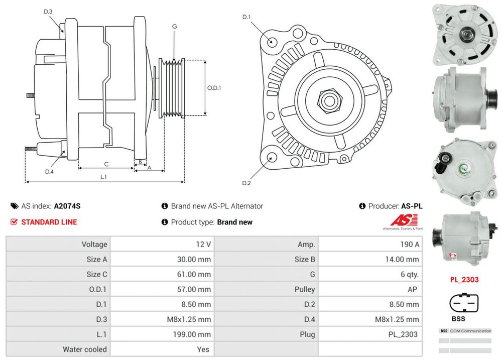 AS-PL A2074S BTS TURBO G104566 BV PSH 305.411.190.080 CASCO CAL20217GS DRI 2113521902 EAI 57974 ELSTOCK 28-5647 LUCAS LRA03035 |