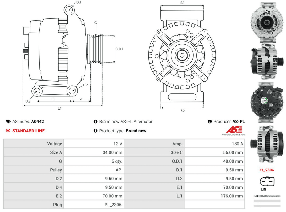 BV PSH 555.555.180.280 CASCO CAL10551AS CASCO CAL10551GS DRI 2253081802 EAI 58230 ELSTOCK 28-6683 FISPA A12BH0943AS HC-CARGO F 032 115 532 HERTH+BUSS ELPARTS 32047860 ITAB AUTOMOTIVE 20010551AV LUCAS LRA03573 RIDEX 4G0501 SIDAT A12BH0943AS |