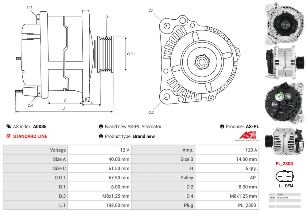 ANDEL ANM97833 AS-PL A0036 BOM-PRESTOLITE A2037B BTS TURBO G100502 BTS TURBO G105997 BV PSH 305.523.120.010 BV PSH 305.523.120.215 CASCO CAL10263AS CASCO CAL10263GS COMLINE CAR-821072 DRI 2381341202 |